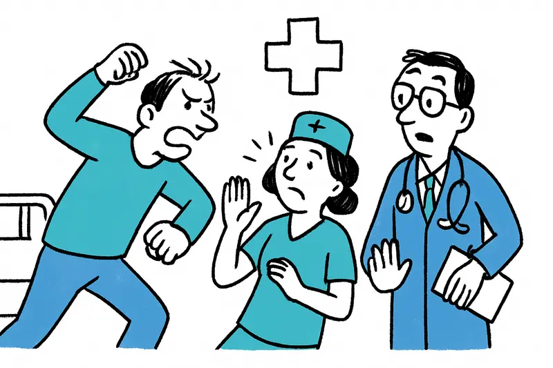 2. Deeskalation und Ausbildung: Kurzfristig verpflichtende Kurse für Ärzte, Pfleger und Empfangspersonal in verbaler Deeskalation, Umgang mit Drogenkonsumenten und sicherer Festhaltetechnik — verbunden mit regelmäßigen Auffrischungen.
